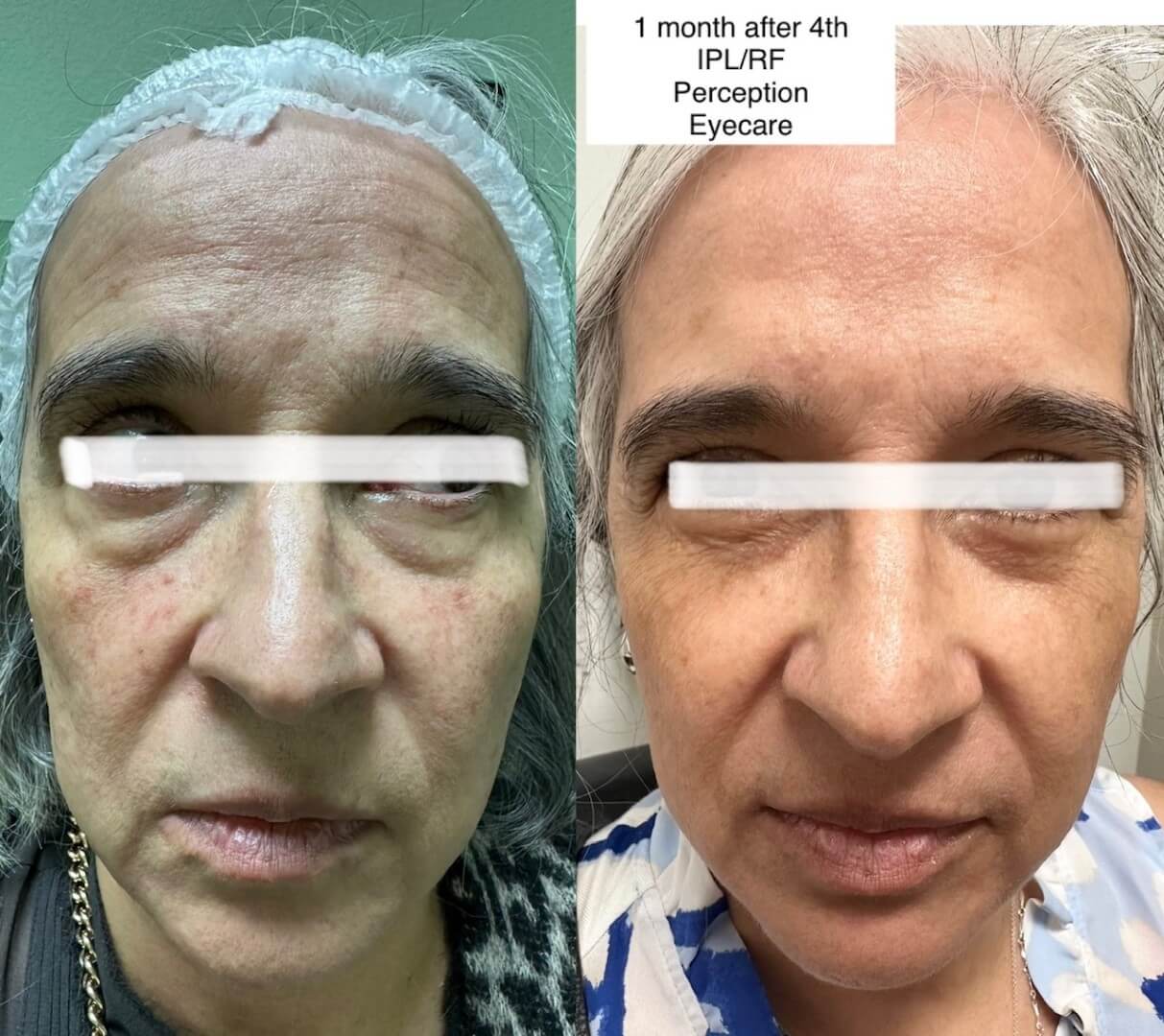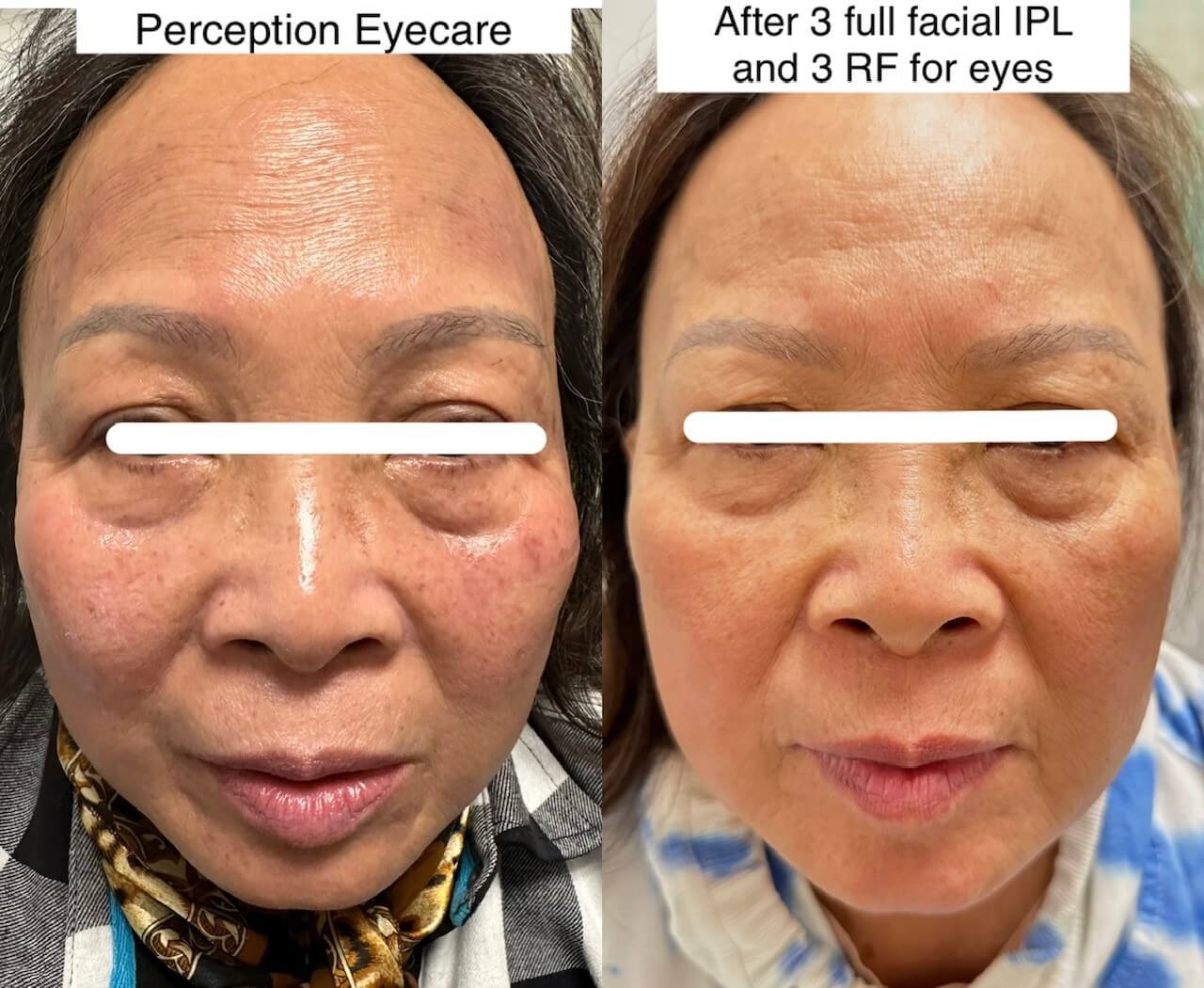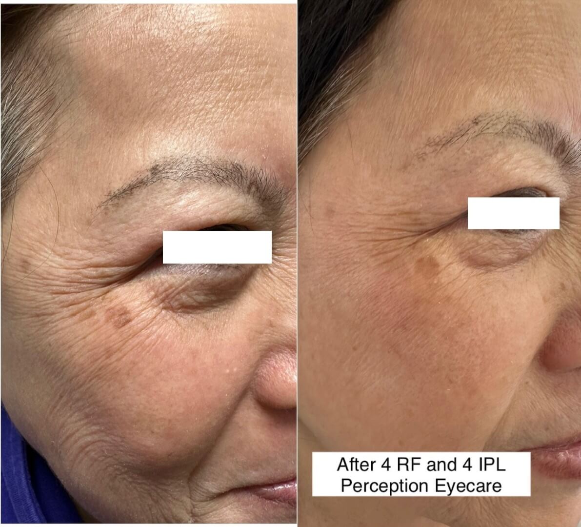 IPL and RF can reverse the signs of aging by stimulating collagen production by smoothing wrinkles and eliminate dark spots for younger looking eyes.