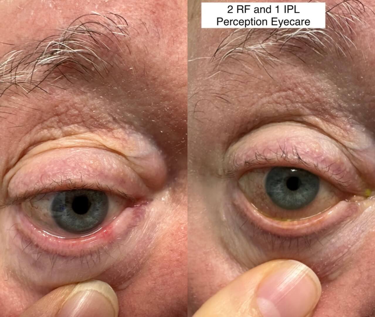 Envision by InMode uses radiofrequency (RF) to heat the meibomian glands, which are the glands that produce oil in the tears. This helps to clear the blockages in the glands and improve tear production. IPL is used to reduce inflammation in the eyes.